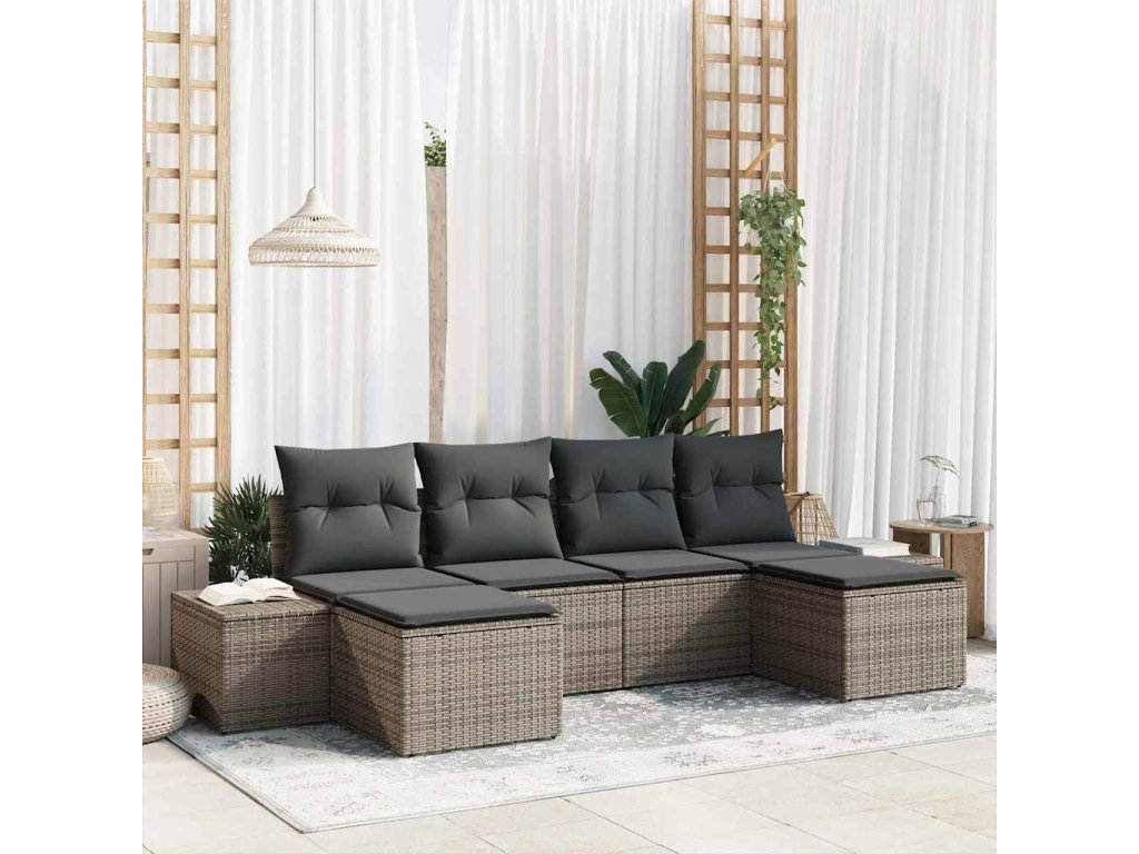 Súprava záhradných pohoviek s vankúšom 6 pcs Sivá polyratan 3347169