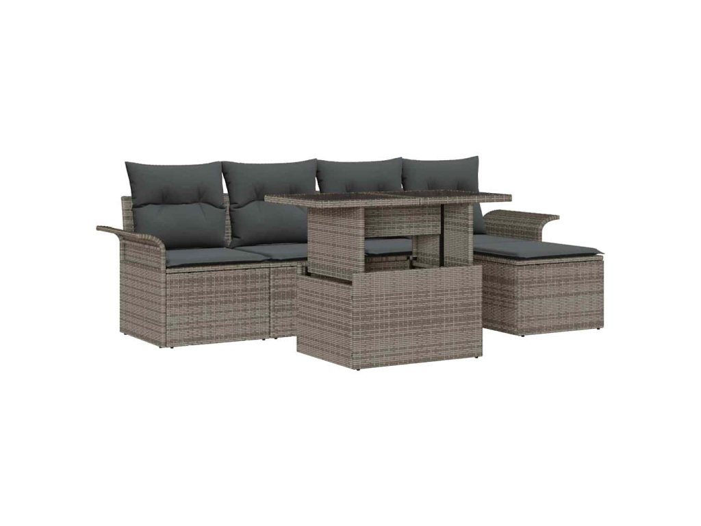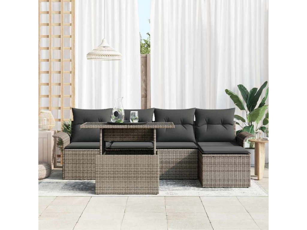 Súprava záhradných pohoviek s vankúšom 6 pcs Sivá polyratan 3348265
