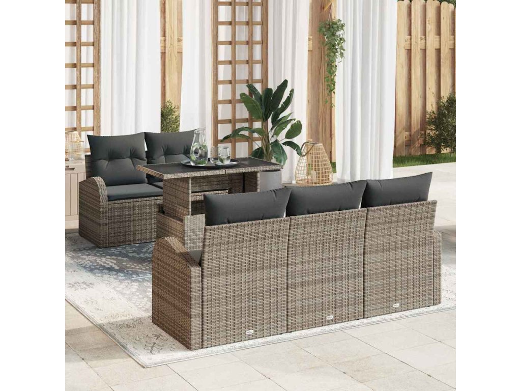 Súprava záhradných pohoviek s vankúšom 6 pcs Sivá polyratan 3348555