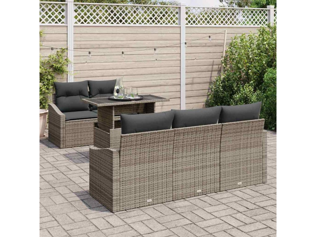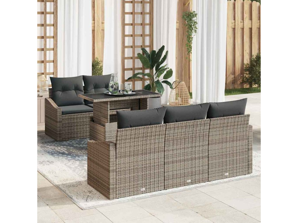 Súprava záhradných pohoviek s vankúšom 6 pcs Sivá polyratan 3348915