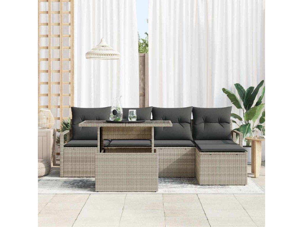 Súprava záhradných pohoviek s vankúšom 6 pcs Svetlosivá 3348808