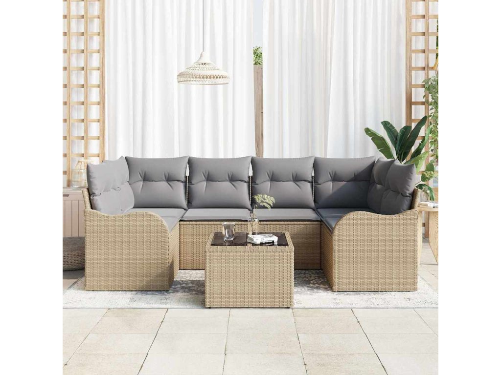 Súprava záhradných pohoviek s vankúšom 7 pcs Béžová a šedá 3354269