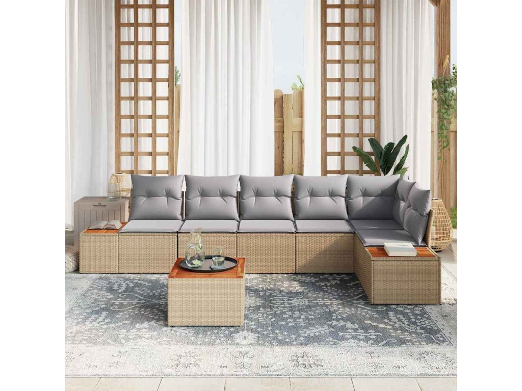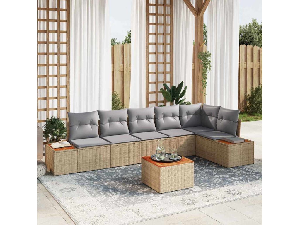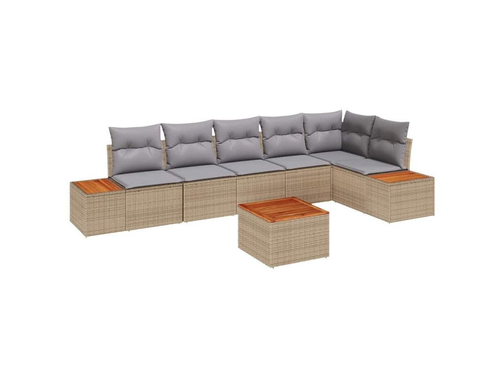Súprava záhradných pohoviek s vankúšom 7 pcs Béžová Poly ratan 3348101