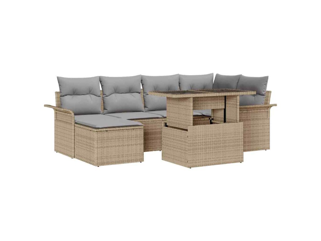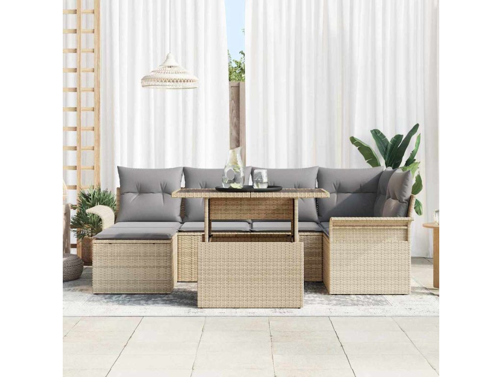 Súprava záhradných pohoviek s vankúšom 7 pcs Béžová Poly ratan 3348316