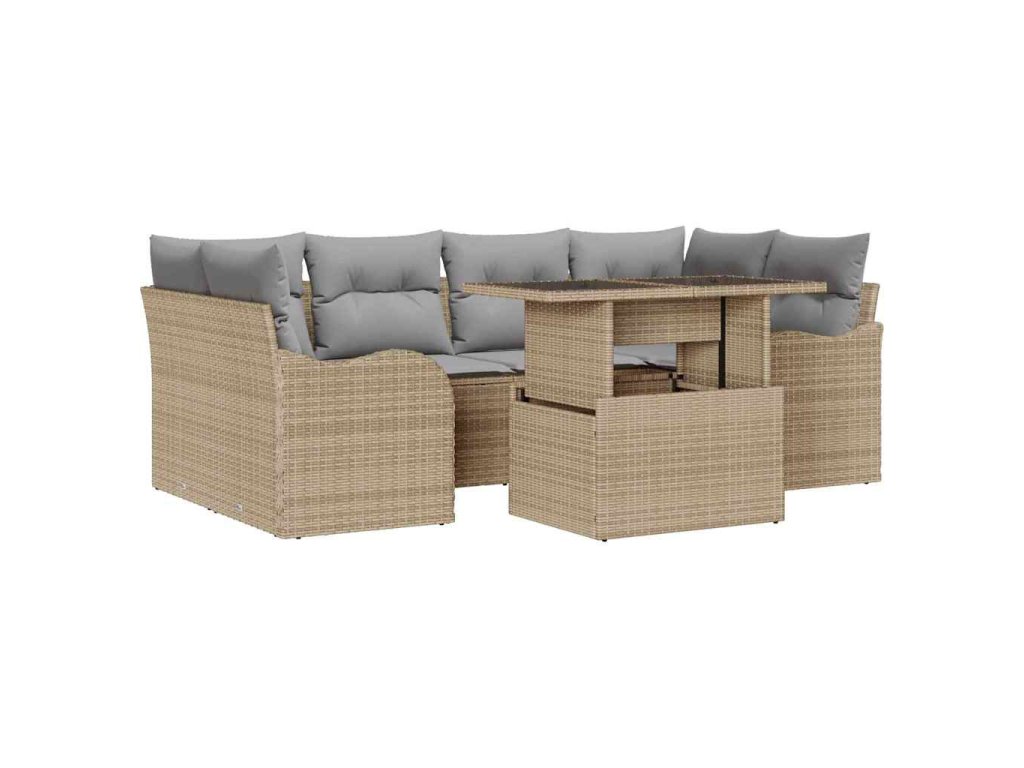 Súprava záhradných pohoviek s vankúšom 7 pcs Béžová Poly ratan 3348396