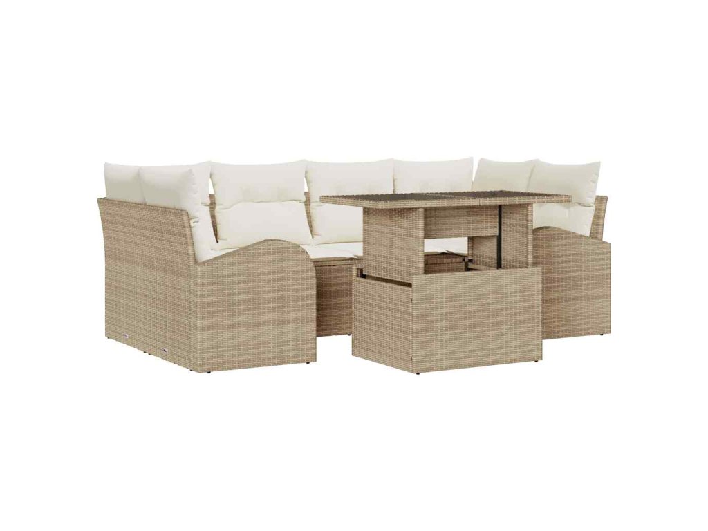 Súprava záhradných pohoviek s vankúšom 7 pcs Béžová Poly ratan 3348577