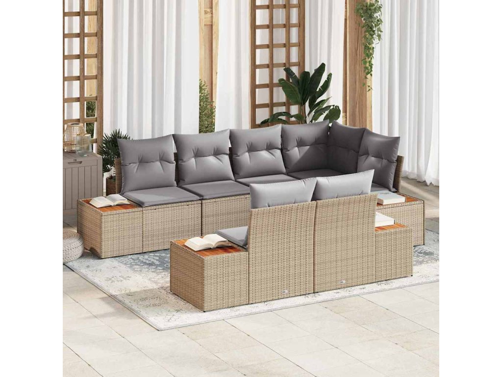 Súprava záhradných pohoviek s vankúšom 7 pcs Béžová polyratan 3348106