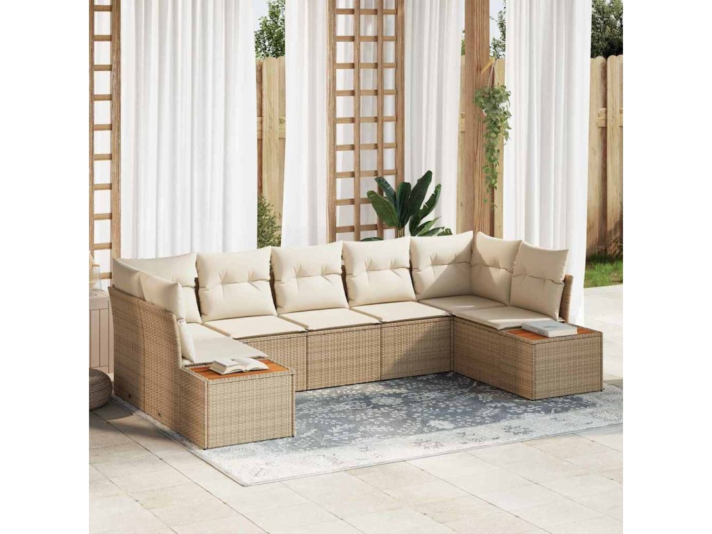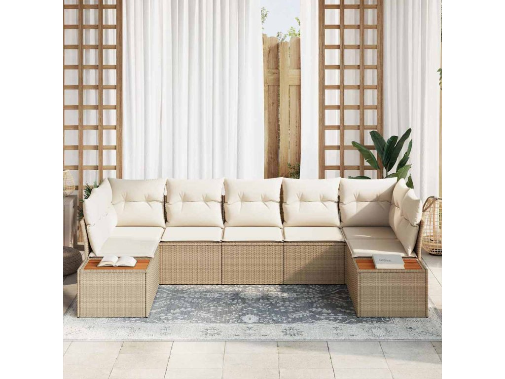 Súprava záhradných pohoviek s vankúšom 7 pcs Béžová polyratan 3348162