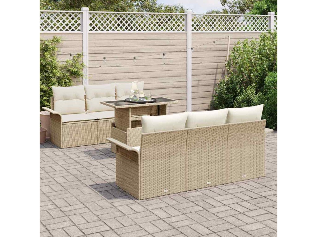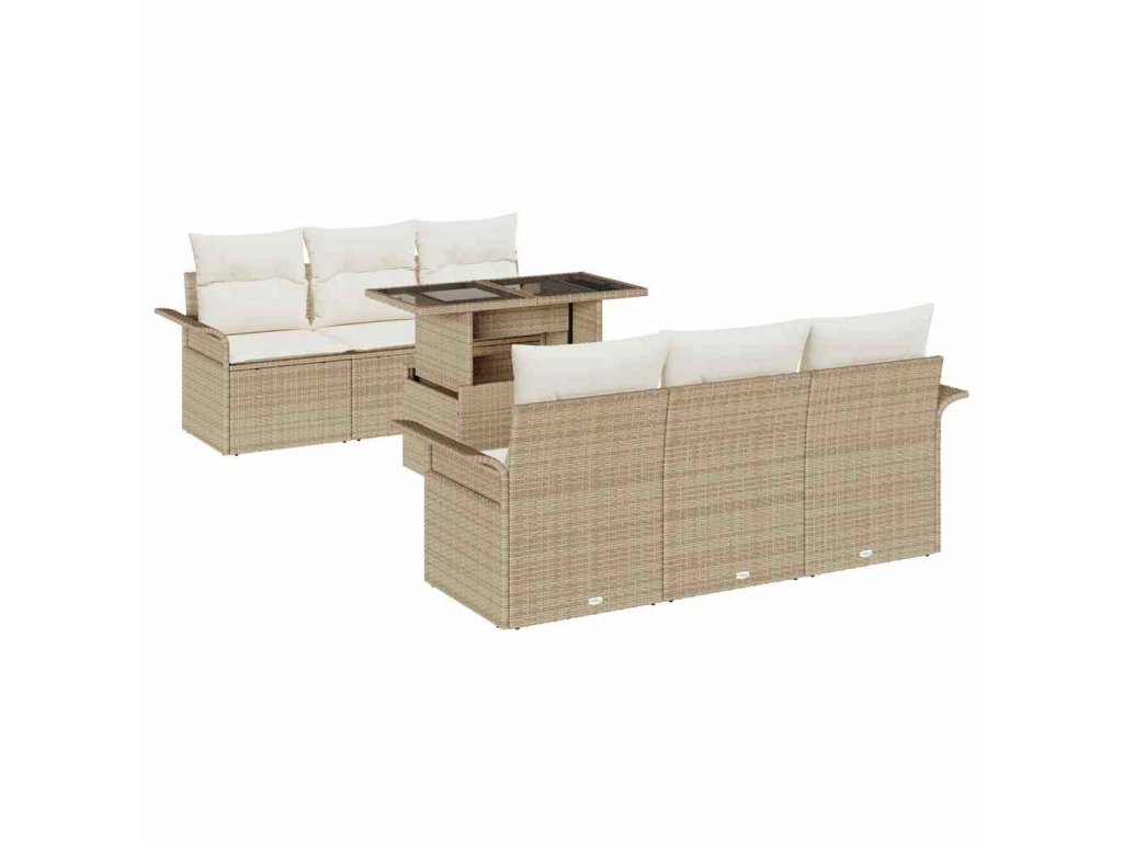 Súprava záhradných pohoviek s vankúšom 7 pcs Béžová polyratan 3348207