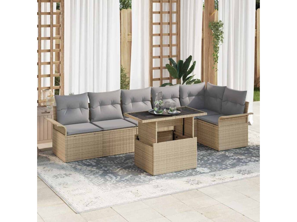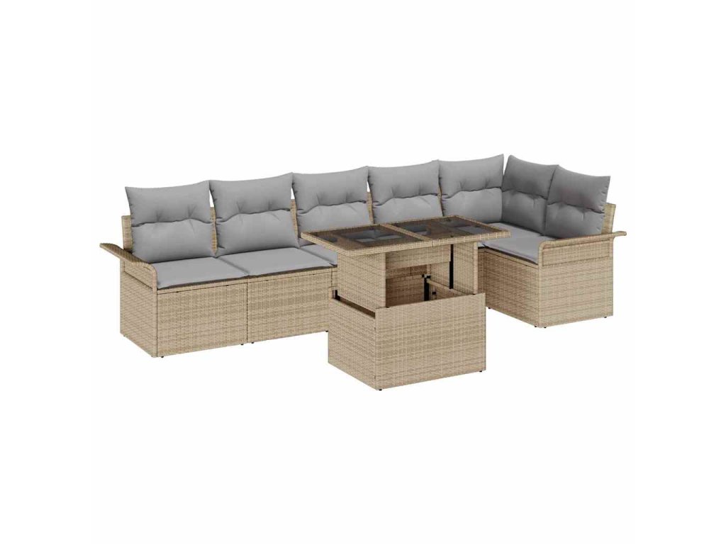 Súprava záhradných pohoviek s vankúšom 7 pcs Béžová polyratan 3348296