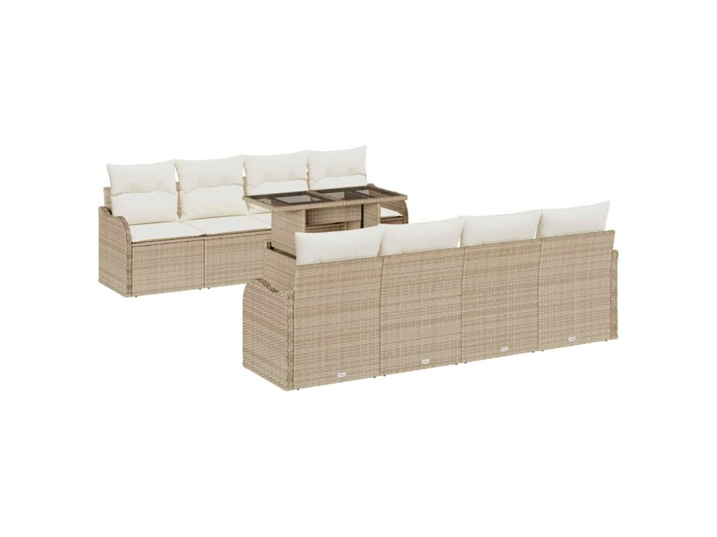 Tento moderný ratanový nábytok na terasu pojme pohodlne až deväť ľudí. S čistými líniami a jednoduchým dizajnom je perfektný na premenenie vašich vonkajších priestorov na štýlové obývačky. Vytvára príjemnú atmosféru, ideálnu na zábavu, čítanie alebo relaxovanie na slnku počas jari a leta. Modulárny dizajn umožňuje ľahké prispôsobenie a reorganizáciu.