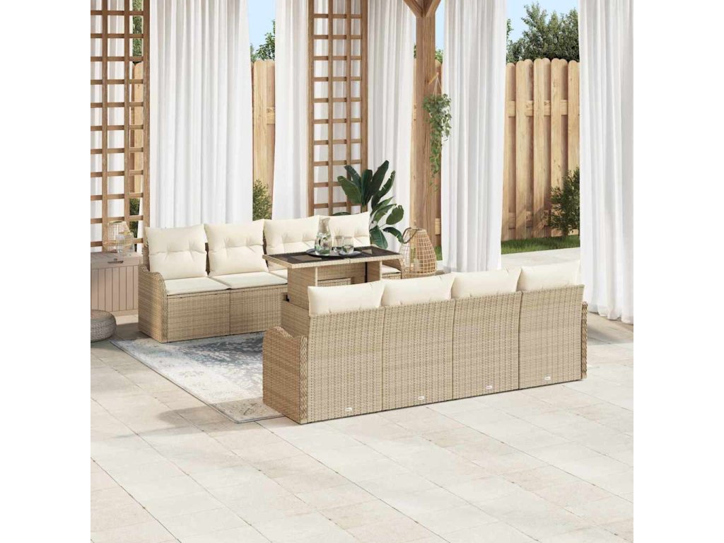 Súprava záhradných pohoviek s vankúšom 7 pcs Béžová polyratan 3348427