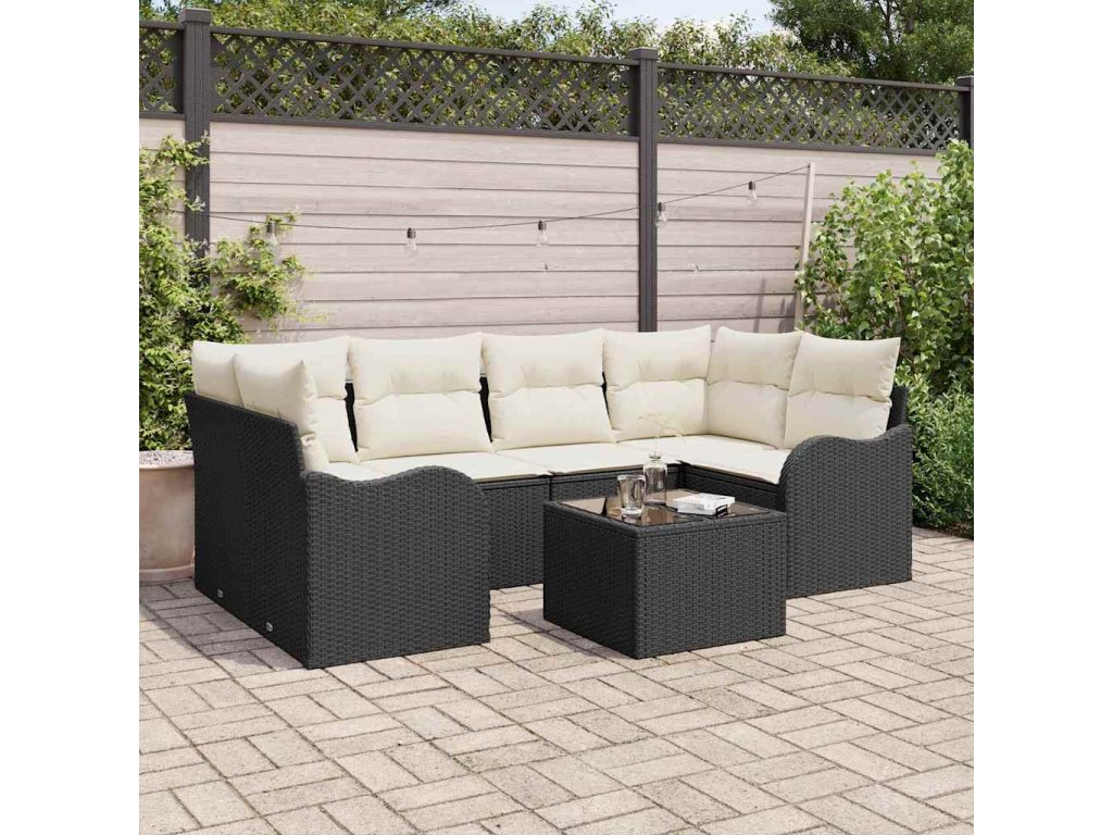 Súprava záhradných pohoviek s vankúšom 7 pcs Čierna a krémová 3354266