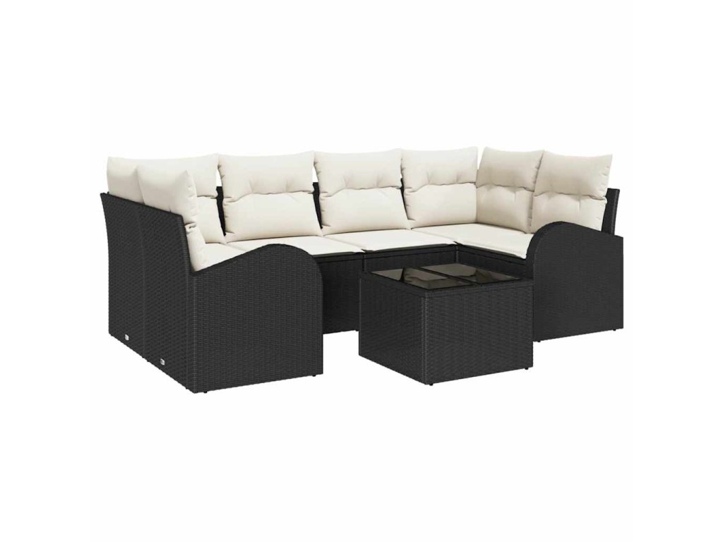 Súprava záhradných pohoviek s vankúšom 7 pcs Čierna a krémová 3354606