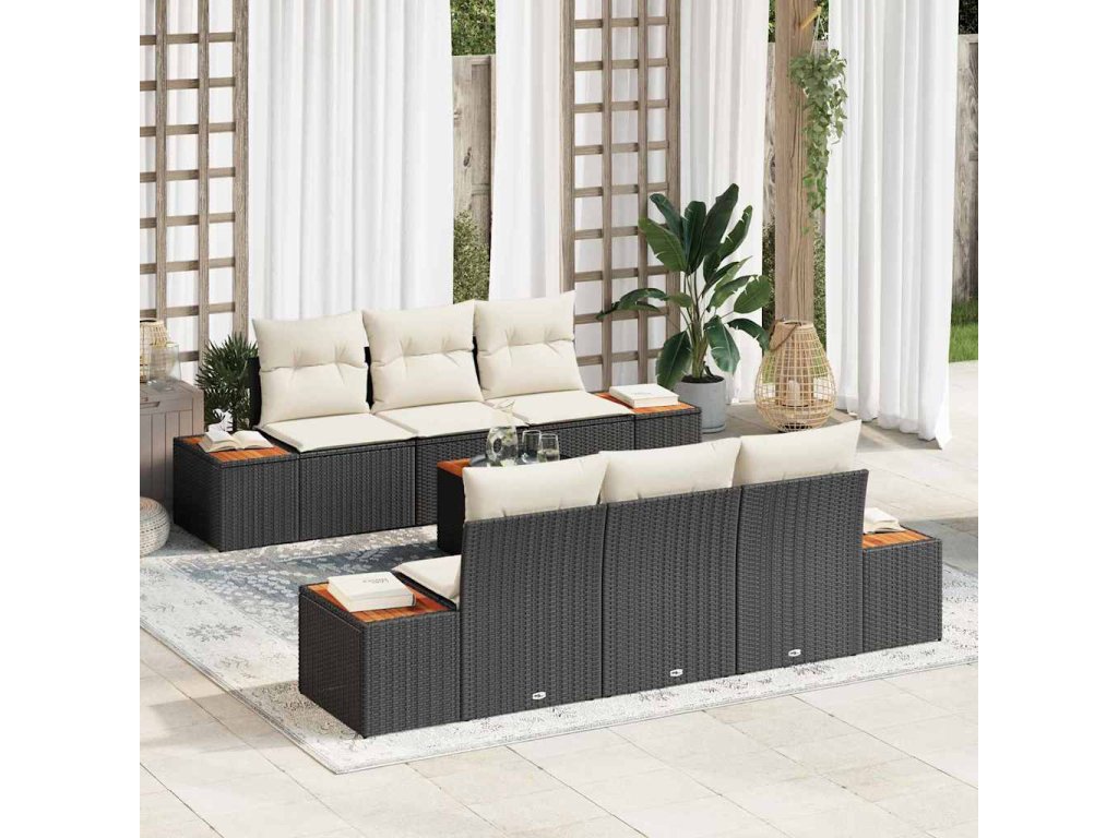 Súprava záhradných pohoviek s vankúšom 7 pcs Čierna Poly ratan 3348028