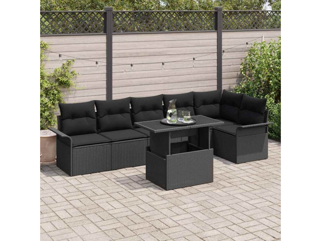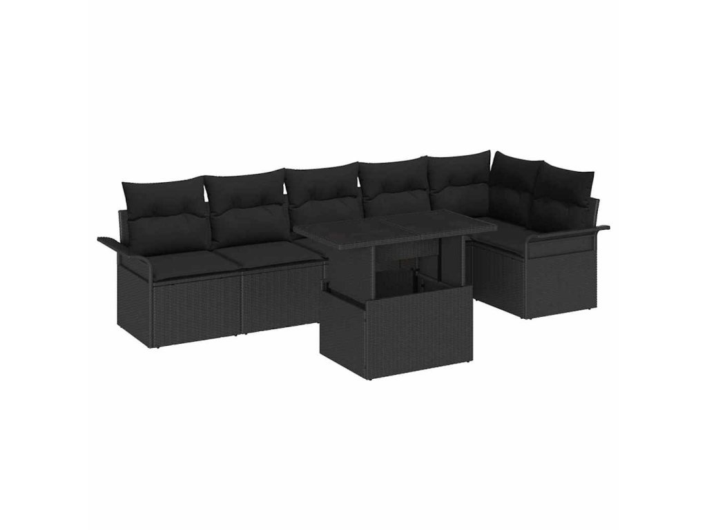 Súprava záhradných pohoviek s vankúšom 7 pcs Čierna Poly ratan 3348299