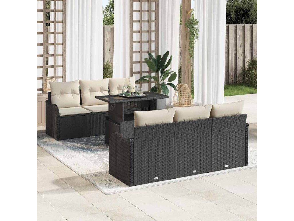 Súprava záhradných pohoviek s vankúšom 7 pcs Čierna Poly ratan 3348383