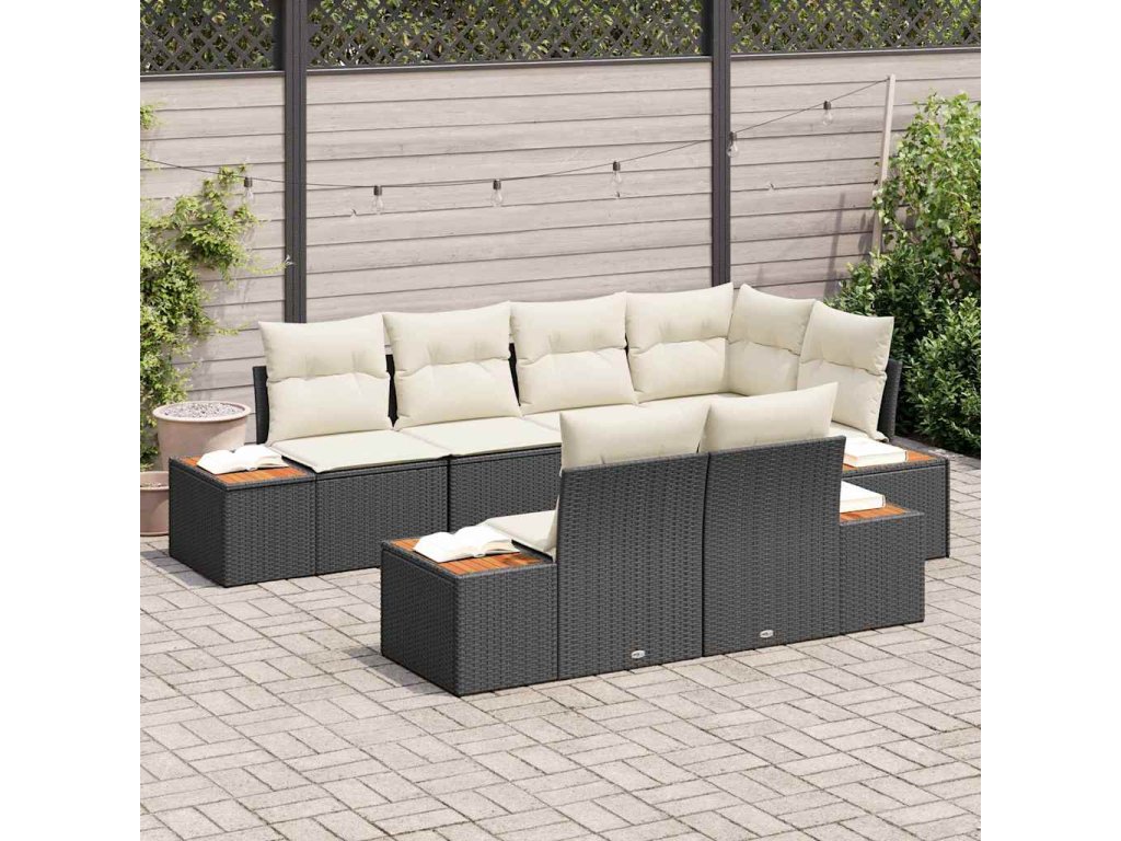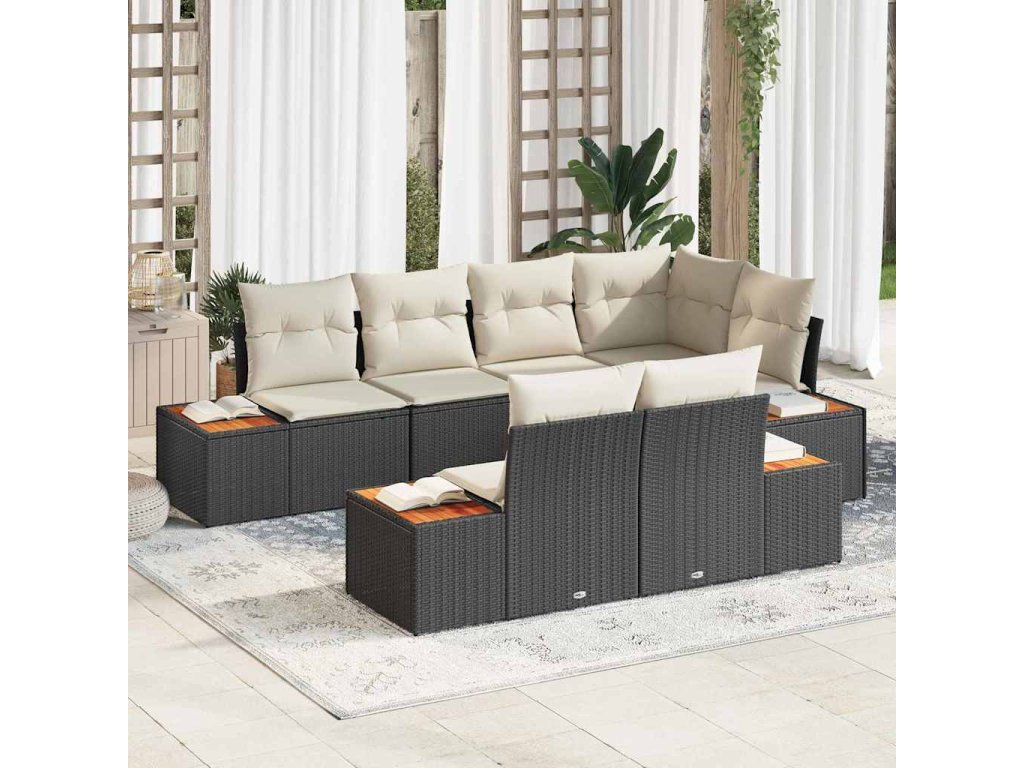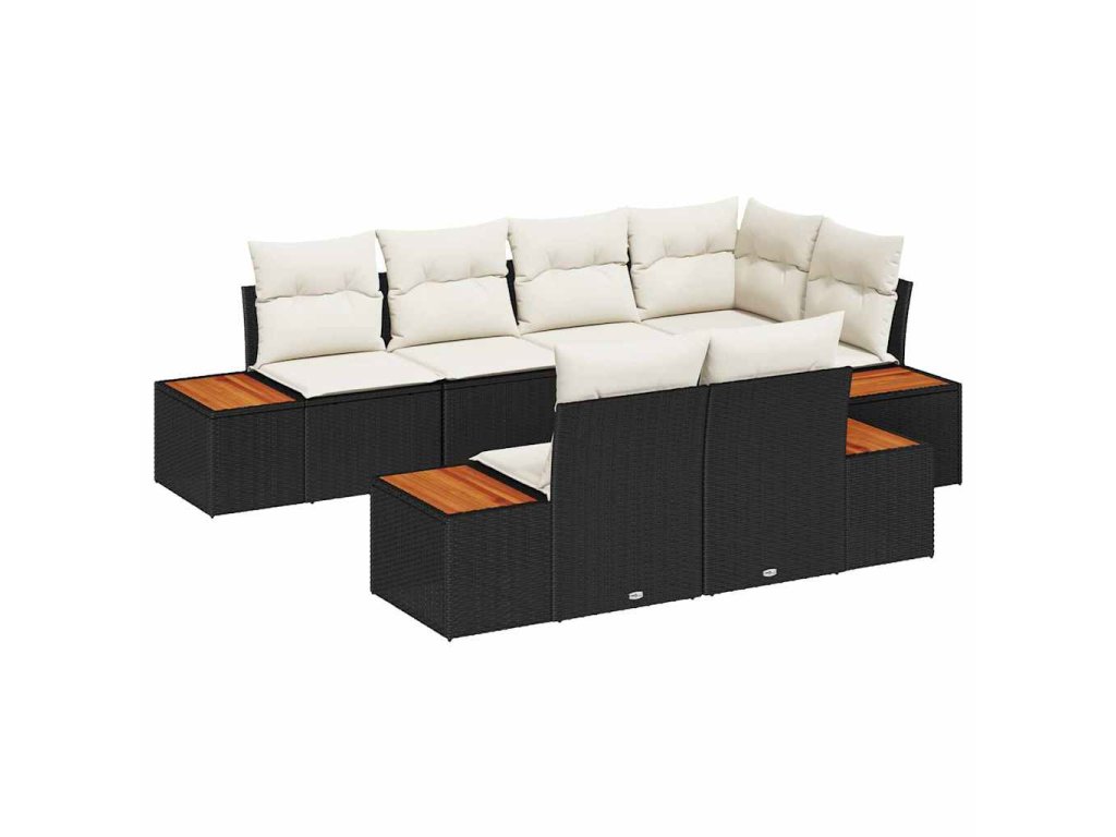 Súprava záhradných pohoviek s vankúšom 7 pcs Čierna polyratan 3348103