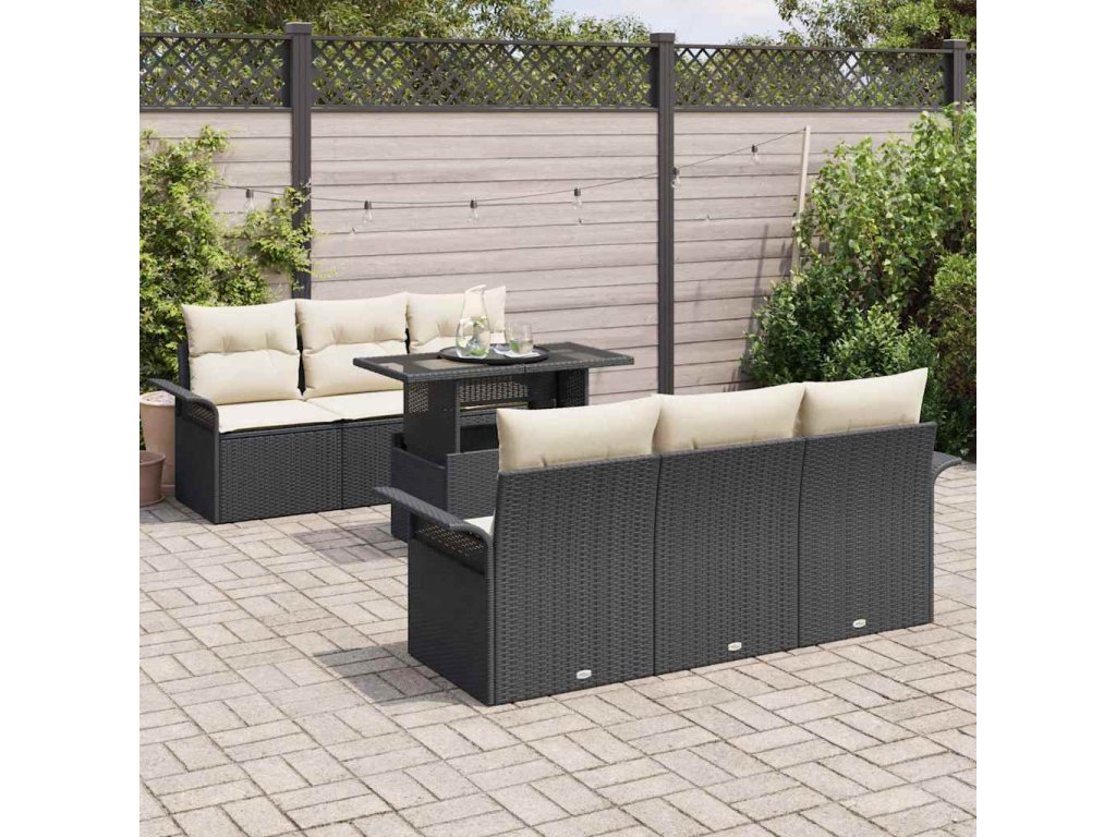 Súprava záhradných pohoviek s vankúšom 7 pcs Čierna polyratan 3348203
