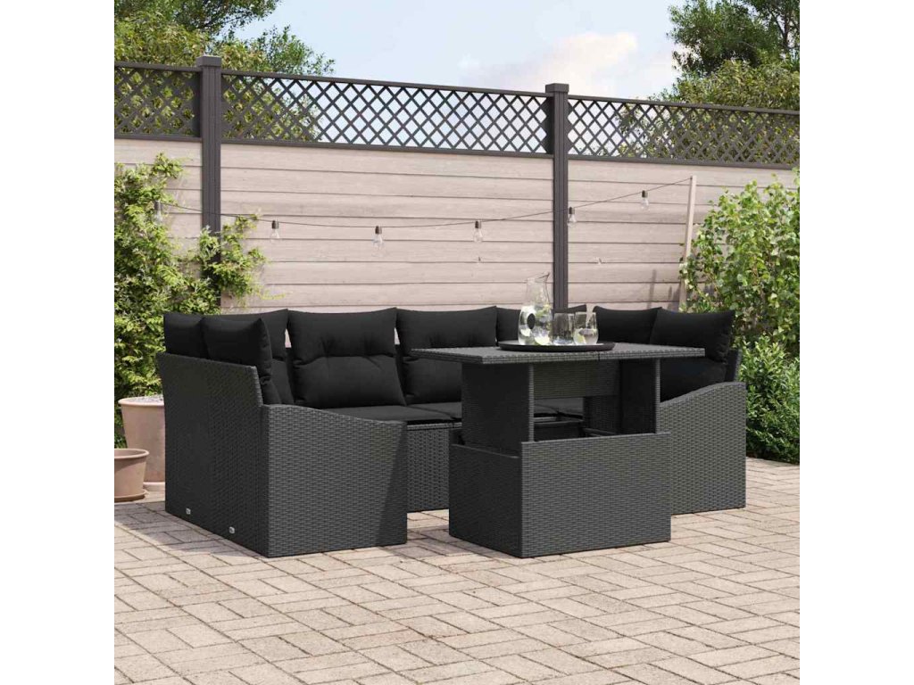 Súprava záhradných pohoviek s vankúšom 7 pcs Čierna polyratan 3348939