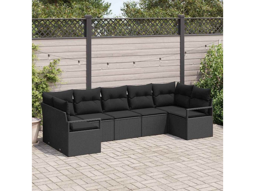 Súprava záhradných pohoviek s vankúšom 7 pcs Čierna polyratan 3355202