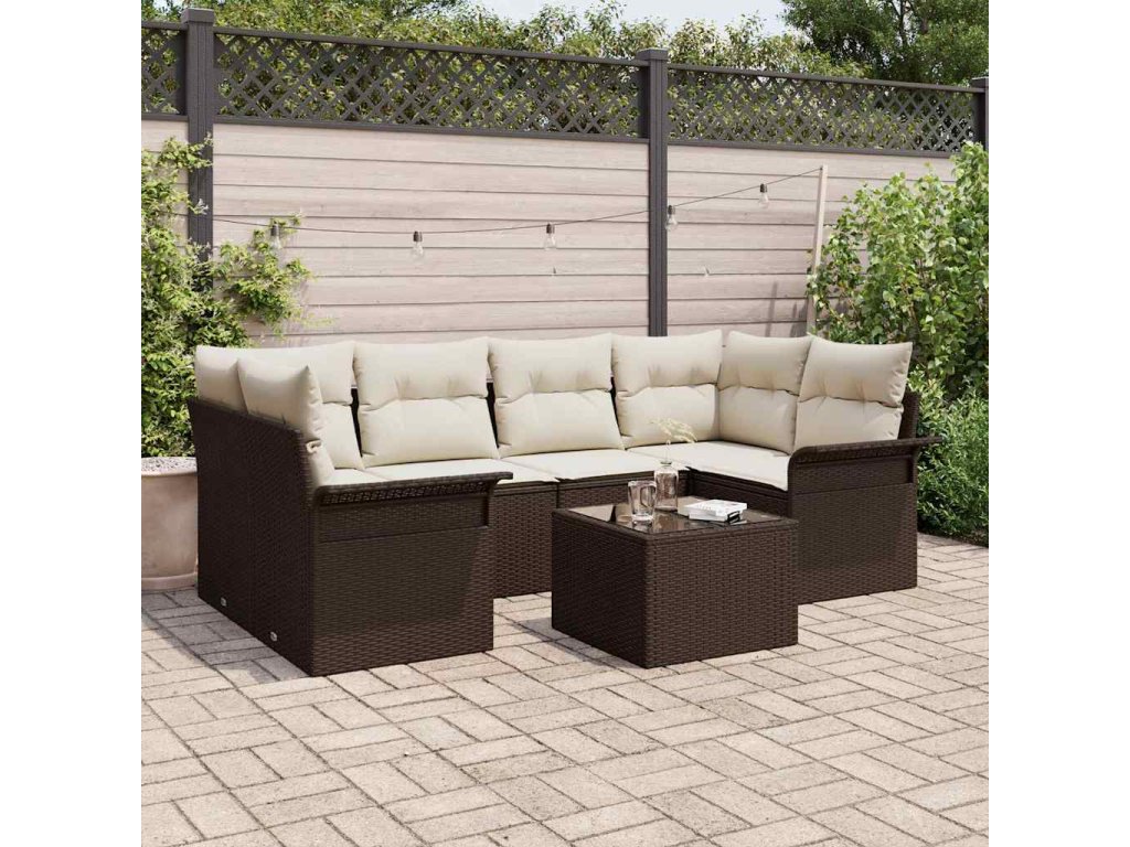 Súprava záhradných pohoviek s vankúšom 7 pcs Hnedá a smotanová 3353927