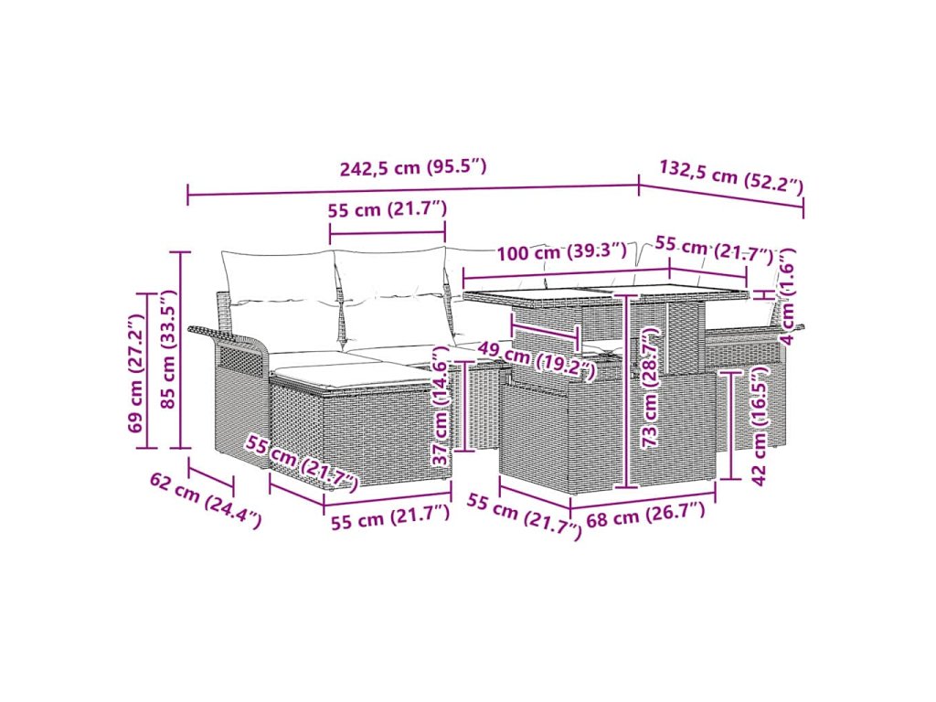 Tento záhradný set sedačiek s moderným nádychom jednoducho vylepší akýkoľvek vonkajší priestor. Jeho obdĺžnikový tvar a tkaná textúra sú skvelým stredobodom stretnutí. Zmestí sa sem až 7 ľudí, ideálne na neformálne akcie alebo elegantné večere, pohodlie a štýl sú tu v perfektnej harmónii.