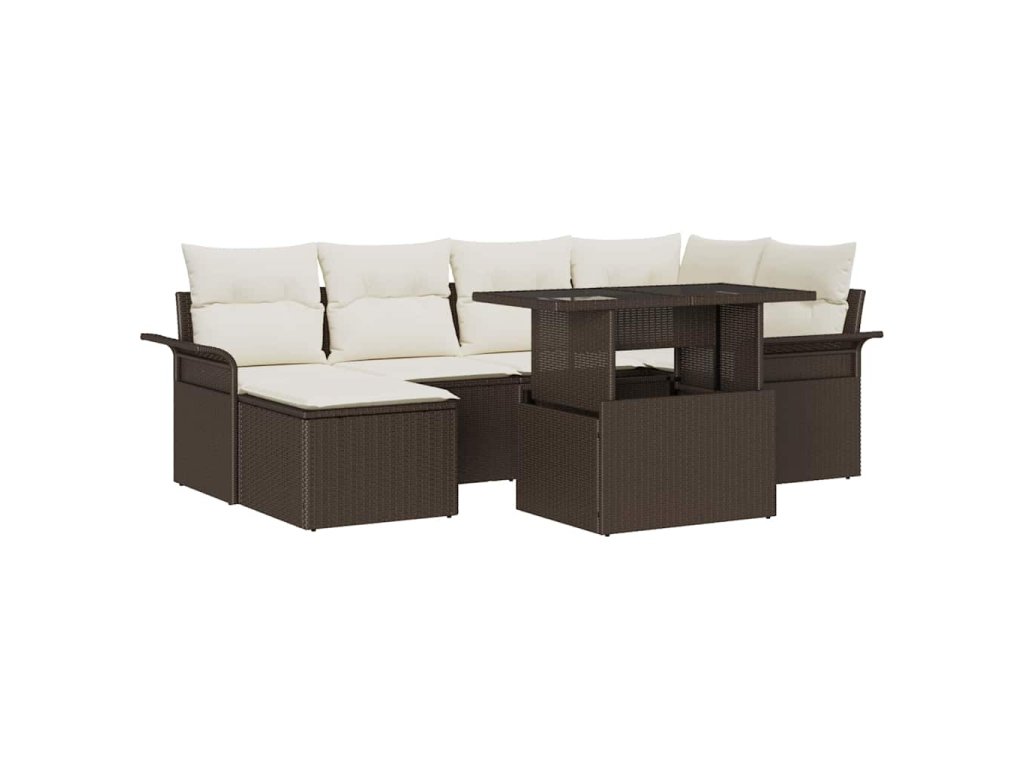 Súprava záhradných pohoviek s vankúšom 7 pcs Hnedá Poly ratan 3348314