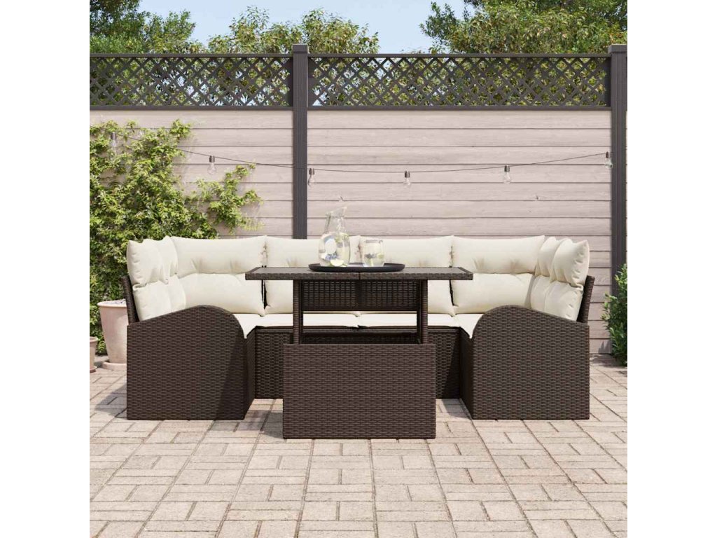 Súprava záhradných pohoviek s vankúšom 7 pcs Hnedá Poly ratan 3348574