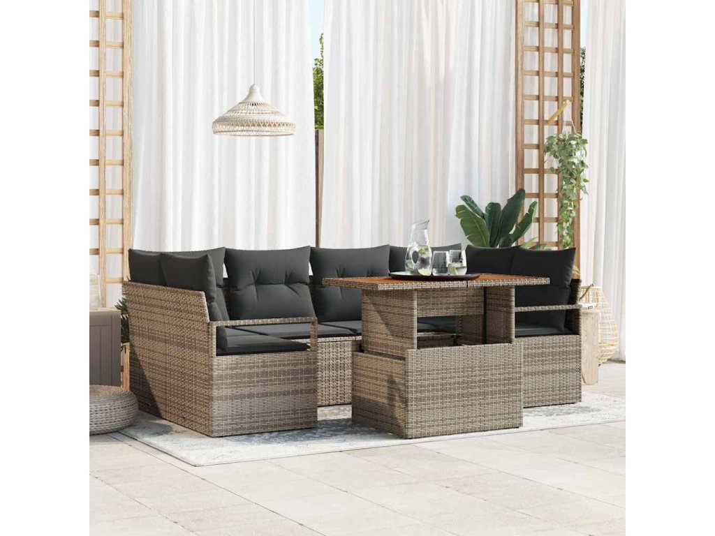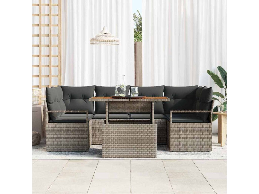 Súprava záhradných pohoviek s vankúšom 7 pcs Sivá 3349663