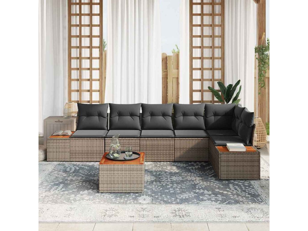 Súprava záhradných pohoviek s vankúšom 7 pcs Sivá Poly ratan 3348100