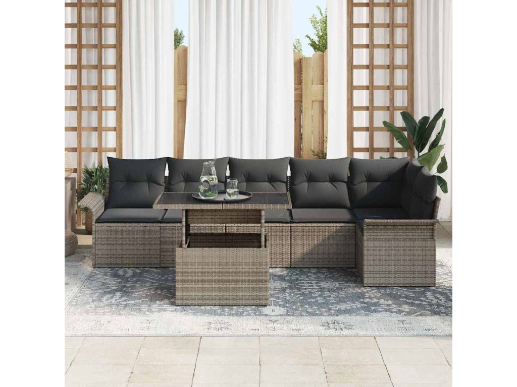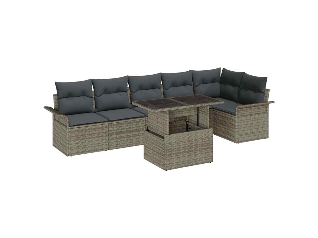 Súprava záhradných pohoviek s vankúšom 7 pcs Sivá Poly ratan 3348295