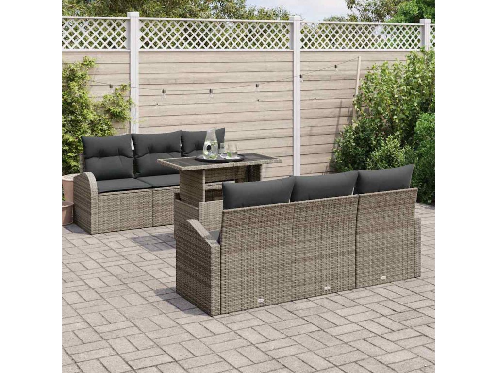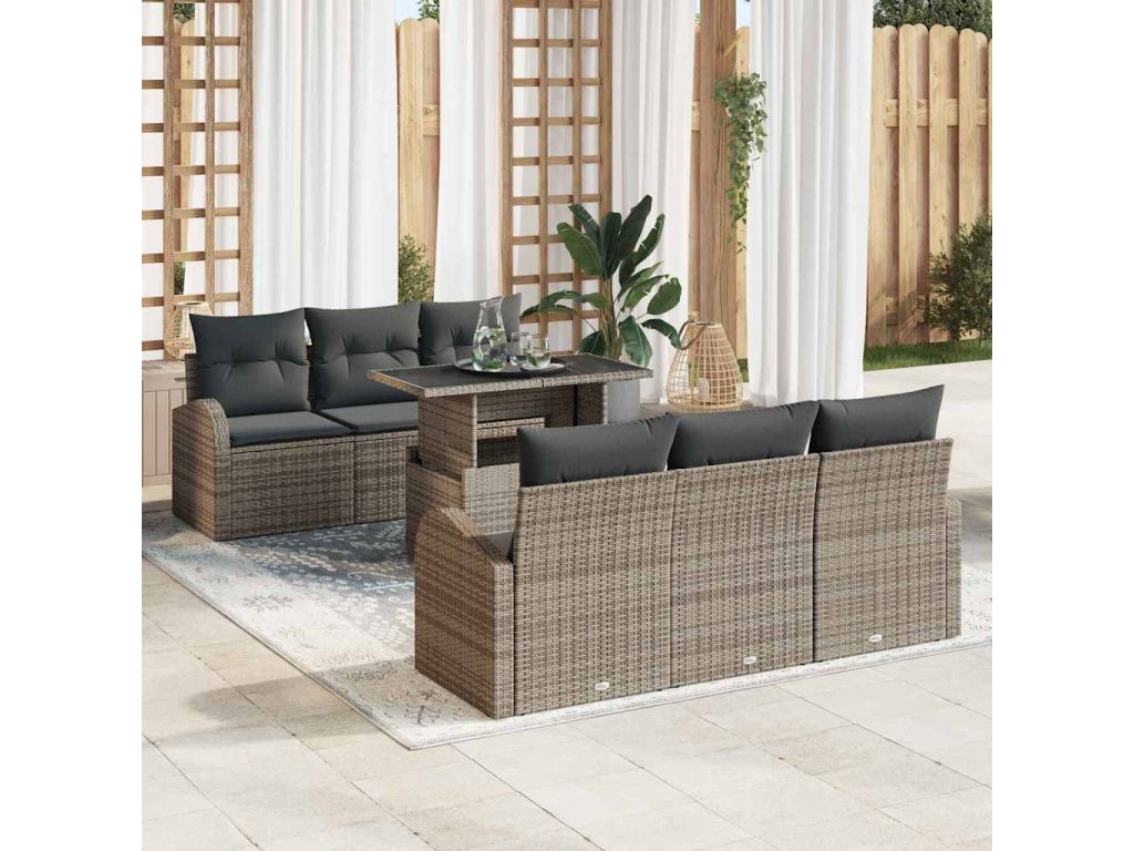 Súprava záhradných pohoviek s vankúšom 7 pcs Sivá Poly ratan 3348565