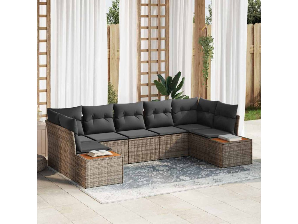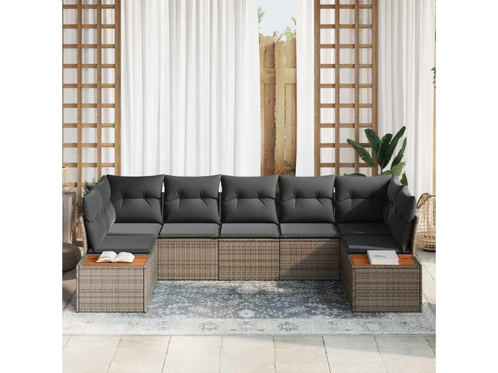 Súprava záhradných pohoviek s vankúšom 7 pcs Sivá polyratan 3348160