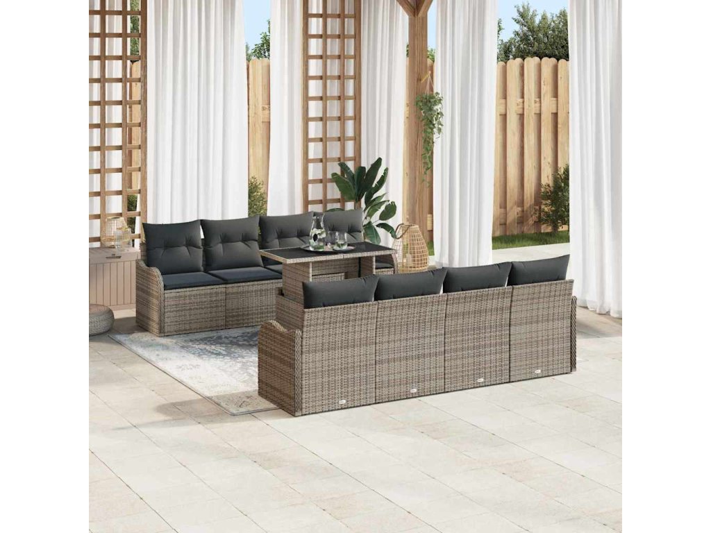 Tento moderný ratanový nábytok na terasu pojme pohodlne až deväť ľudí. S čistými líniami a jednoduchým dizajnom je perfektný na premenenie vašich vonkajších priestorov na štýlové obývačky. Vytvára príjemnú atmosféru, ideálnu na zábavu, čítanie alebo relaxovanie na slnku počas jari a leta. Modulárny dizajn umožňuje ľahké prispôsobenie a reorganizáciu.