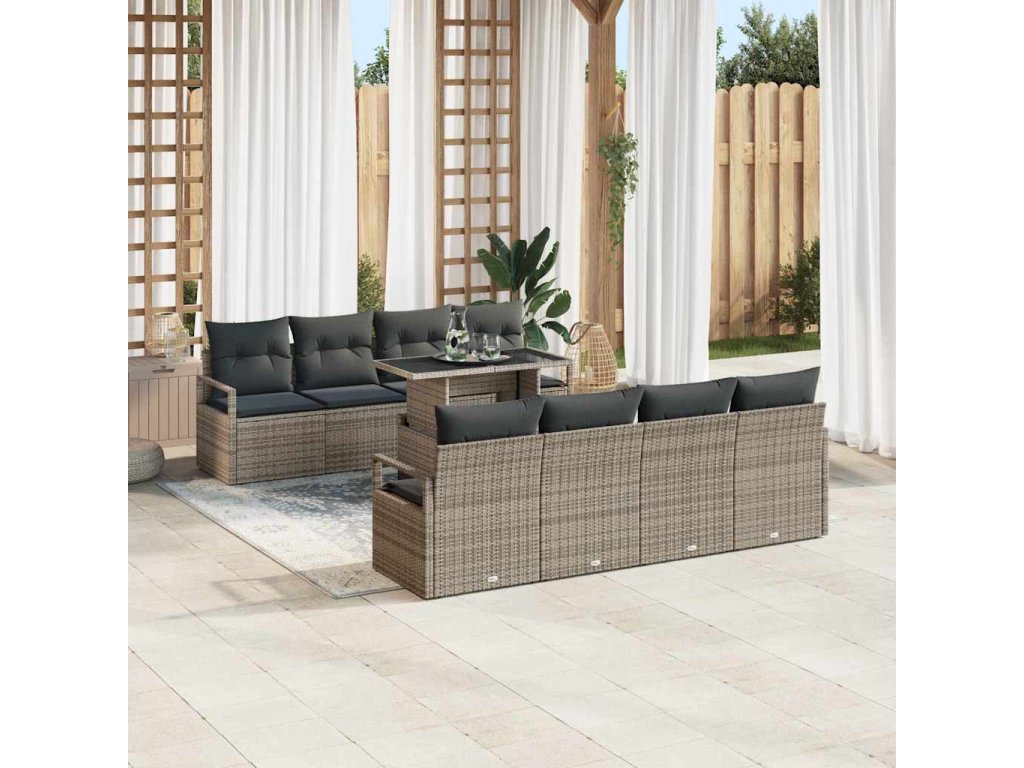 - Kompletné súčasti vybavenia: Obsahuje rôzne sedacie prvky a stôl. Opierky rúk sú z poly ratanu, čo pridáva na elegancii, a vankúše sú penové pre extra pohodlie a podporu. Možno ich jednoducho prispôsobovať podľa svojich potrieb.