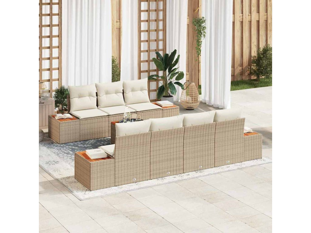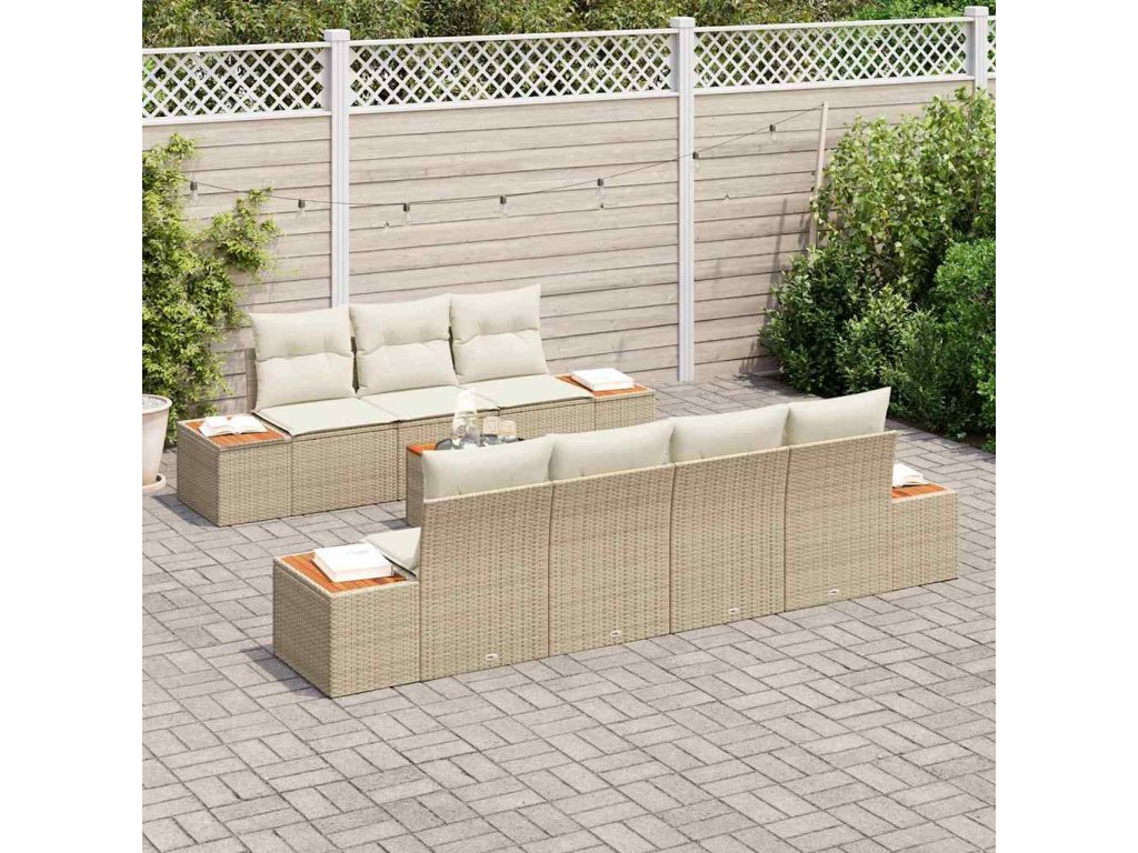 Súprava záhradných pohoviek s vankúšom 8 pcs Béžová Poly ratan 3348042