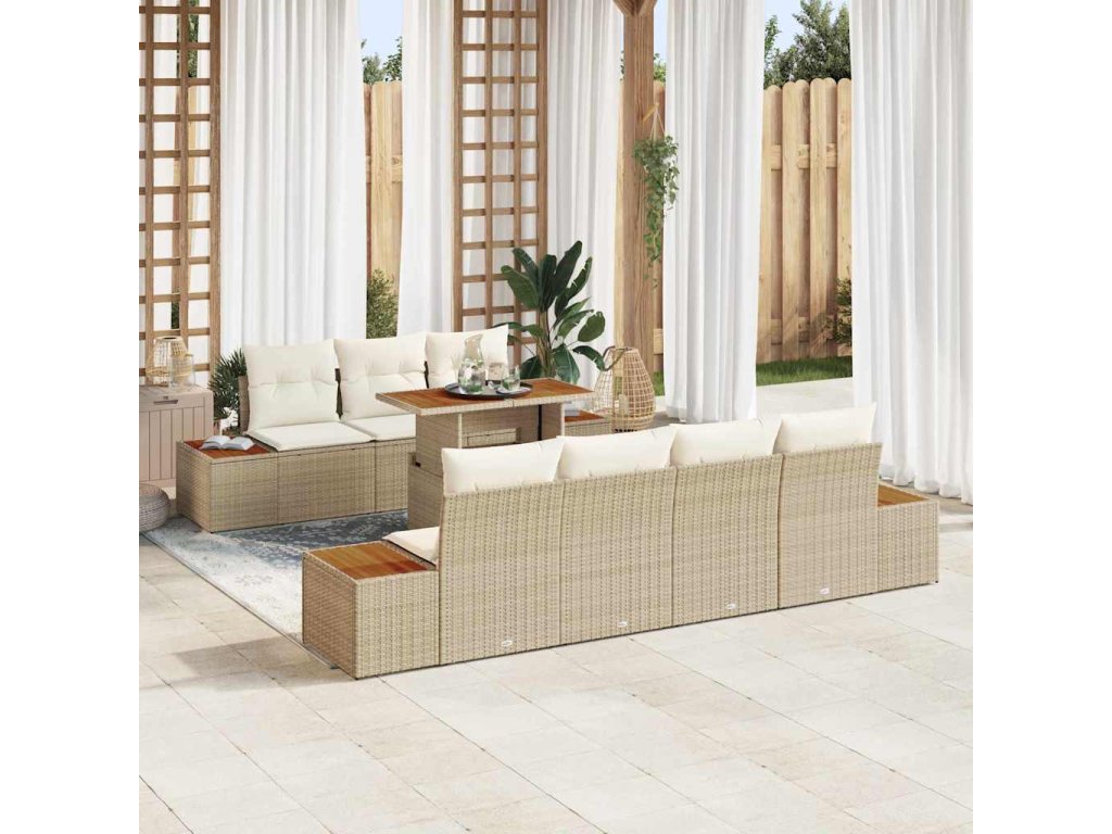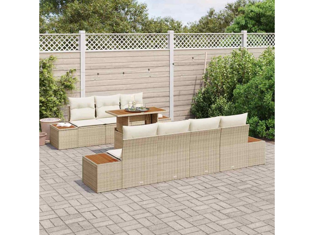 Súprava záhradných pohoviek s vankúšom 8 pcs Béžová Poly ratan 3350043
