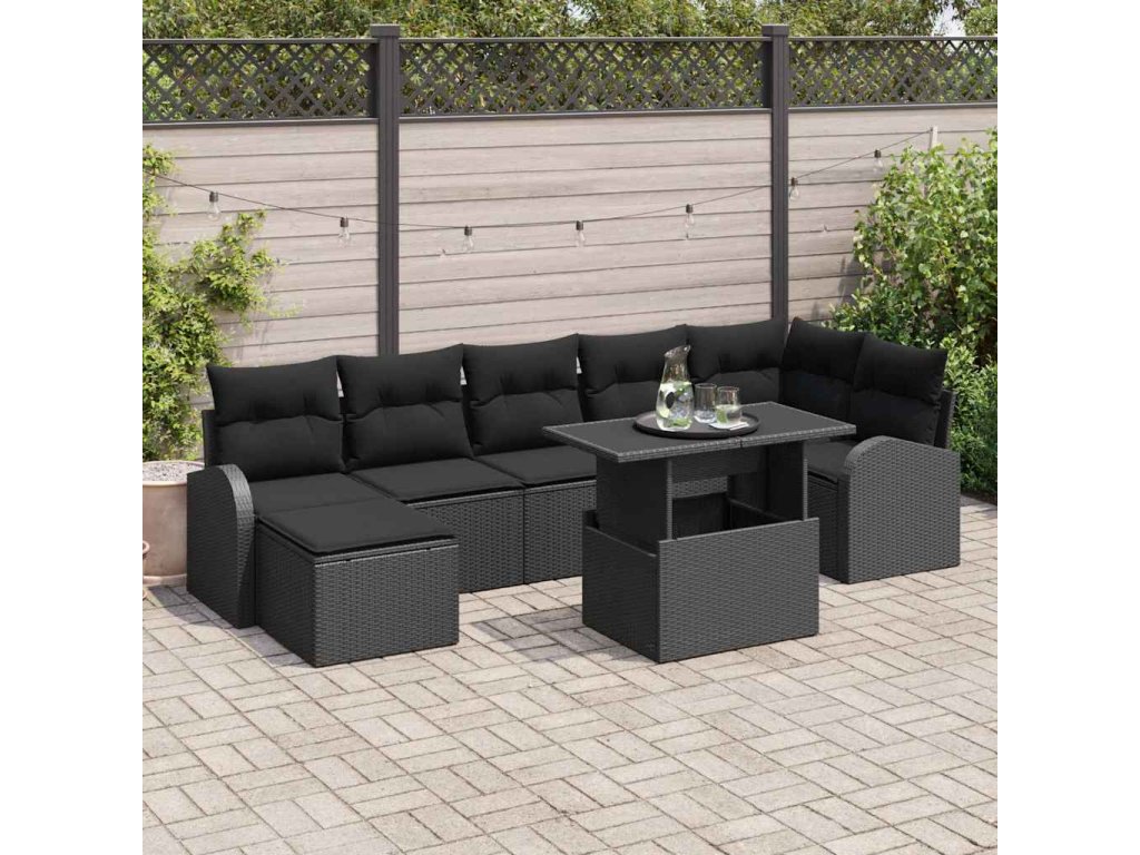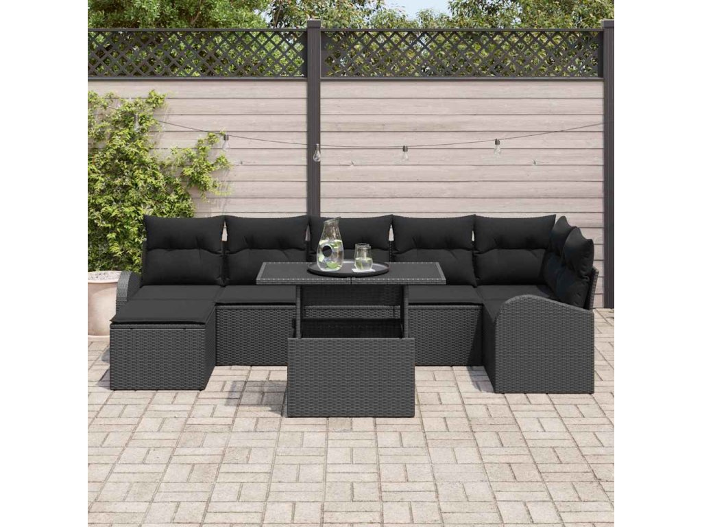 Súprava záhradných pohoviek s vankúšom 8 pcs Čierna 3348689