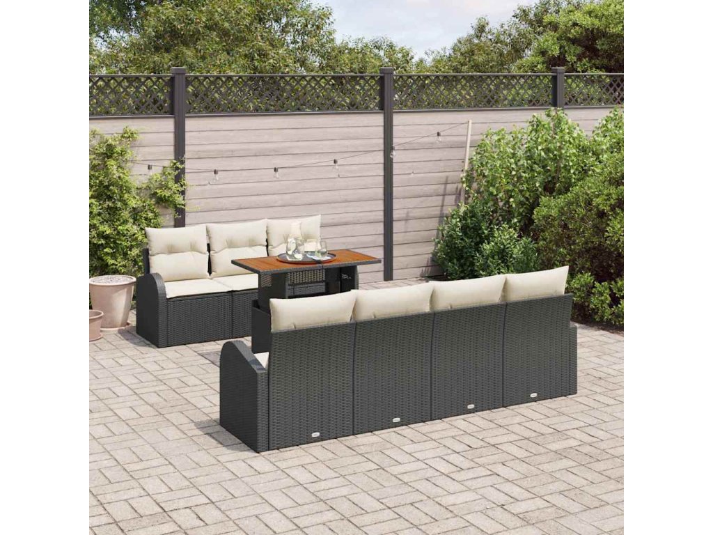 Súprava záhradných pohoviek s vankúšom 8 pcs Čierna a krémová 3349543