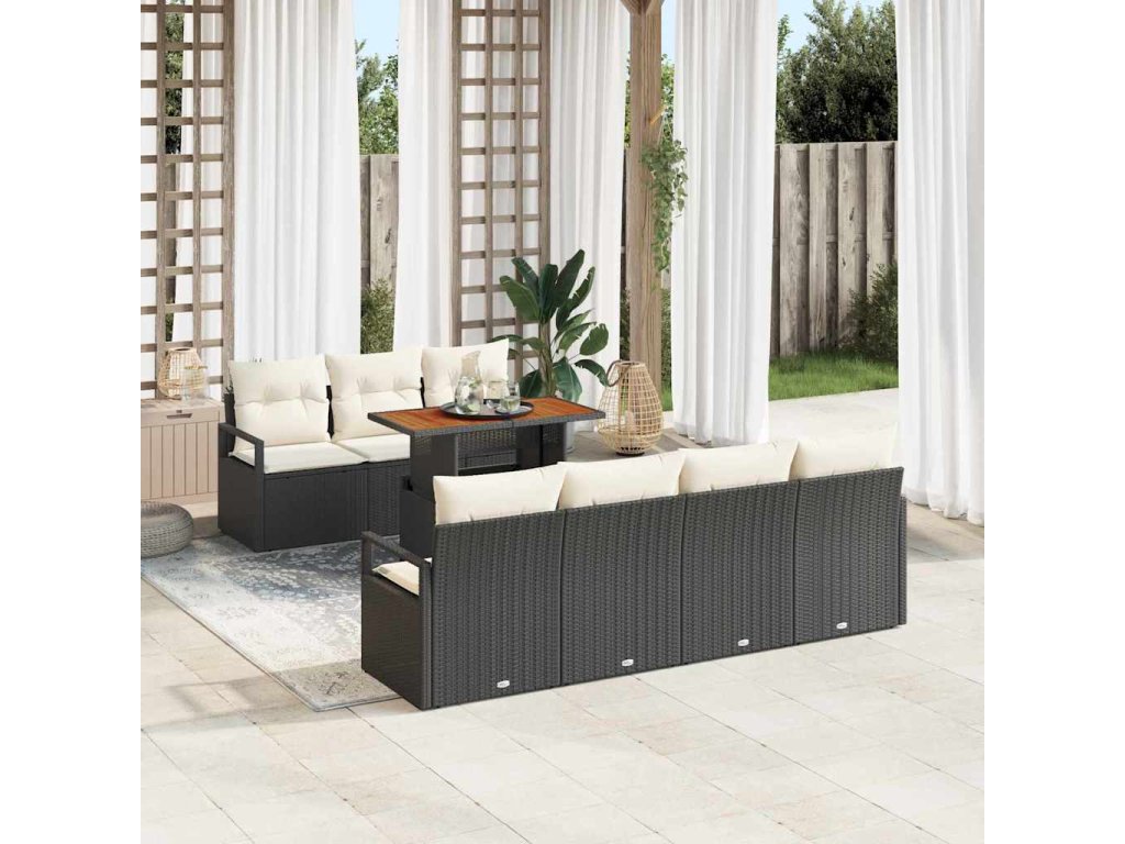 Súprava záhradných pohoviek s vankúšom 8 pcs Čierna a krémová 3349669