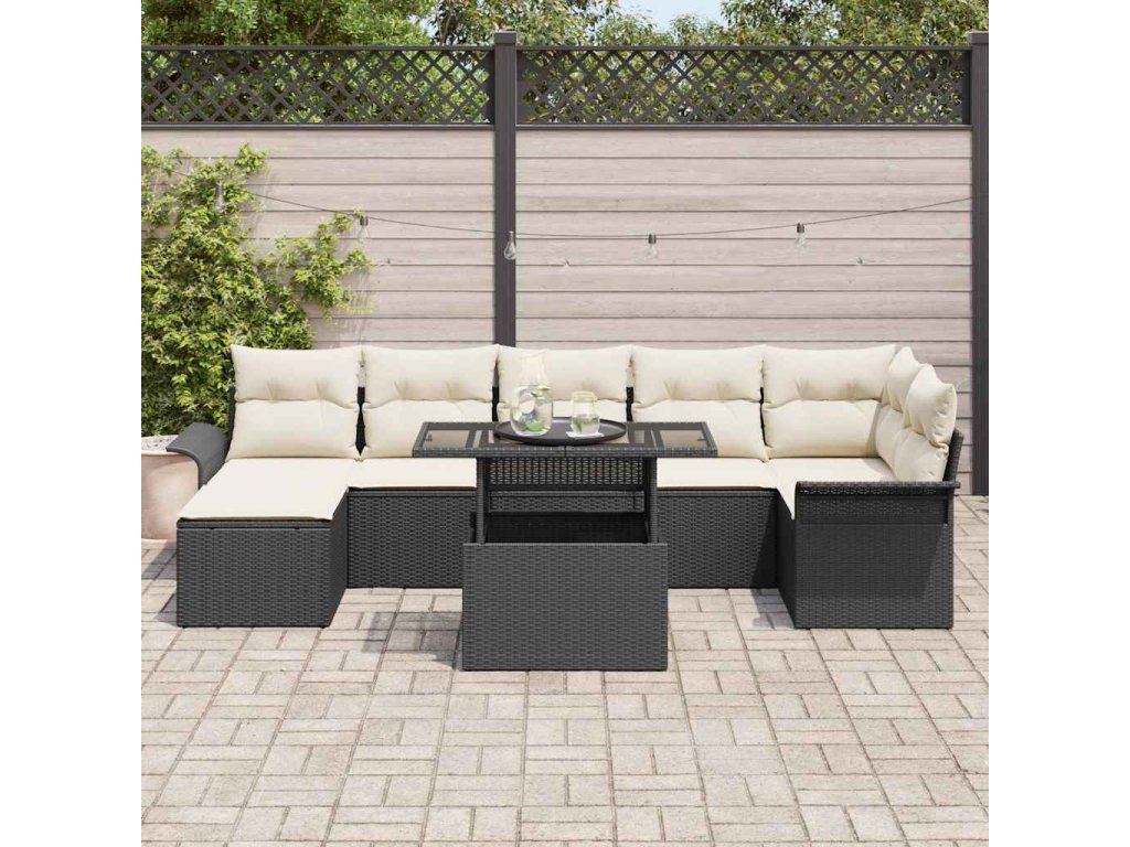 Súprava záhradných pohoviek s vankúšom 8 pcs Čierna Poly ratan 3348323