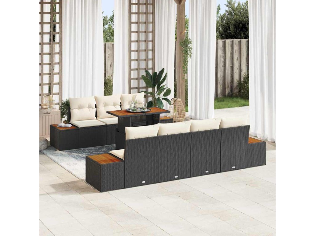 Súprava záhradných pohoviek s vankúšom 8 pcs Čierna Poly ratan 3350039