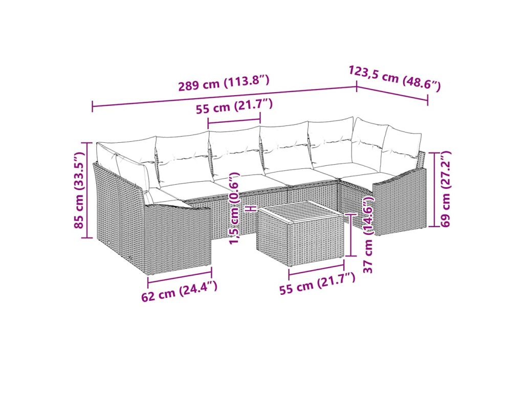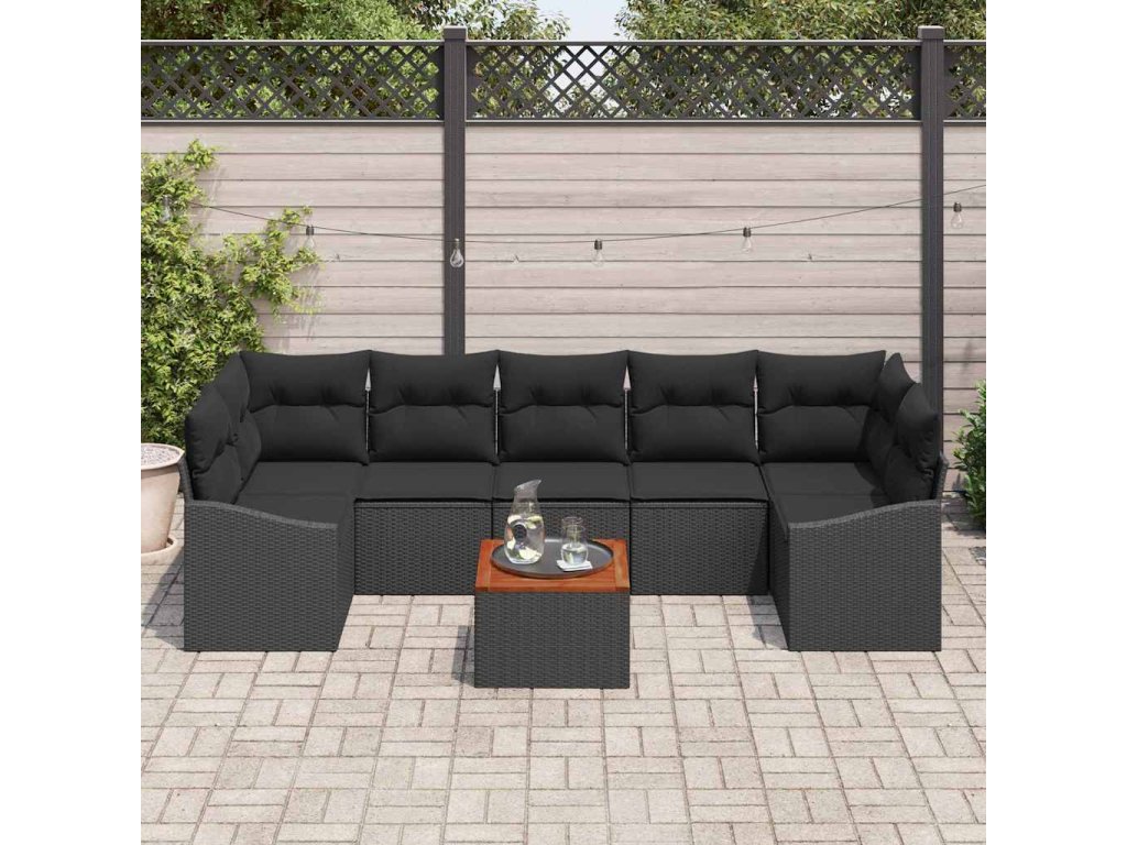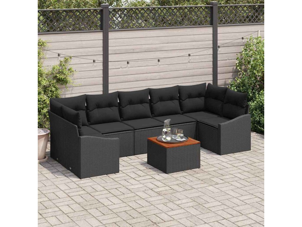 Súprava záhradných pohoviek s vankúšom 8 pcs Čierna polyratan 3347800