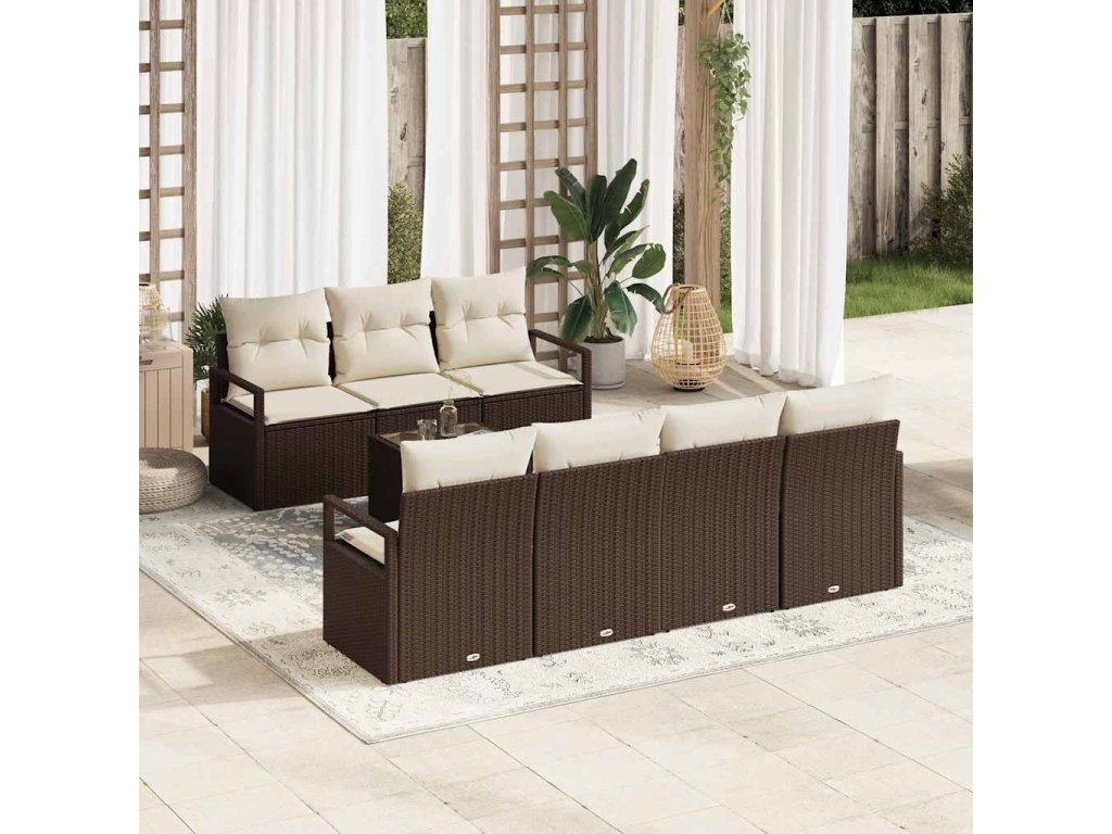 Súprava záhradných pohoviek s vankúšom 8 pcs Hnedá a smotanová 3354957