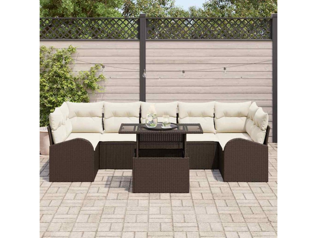 Súprava záhradných pohoviek s vankúšom 8 pcs Hnedá Poly ratan 3348594