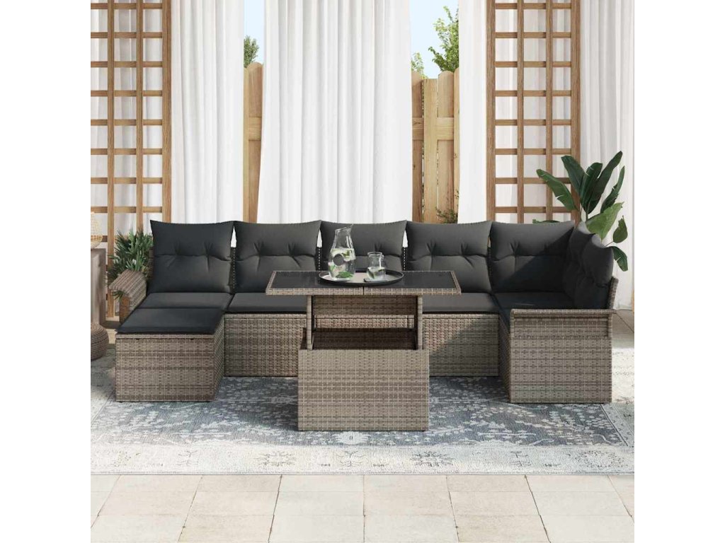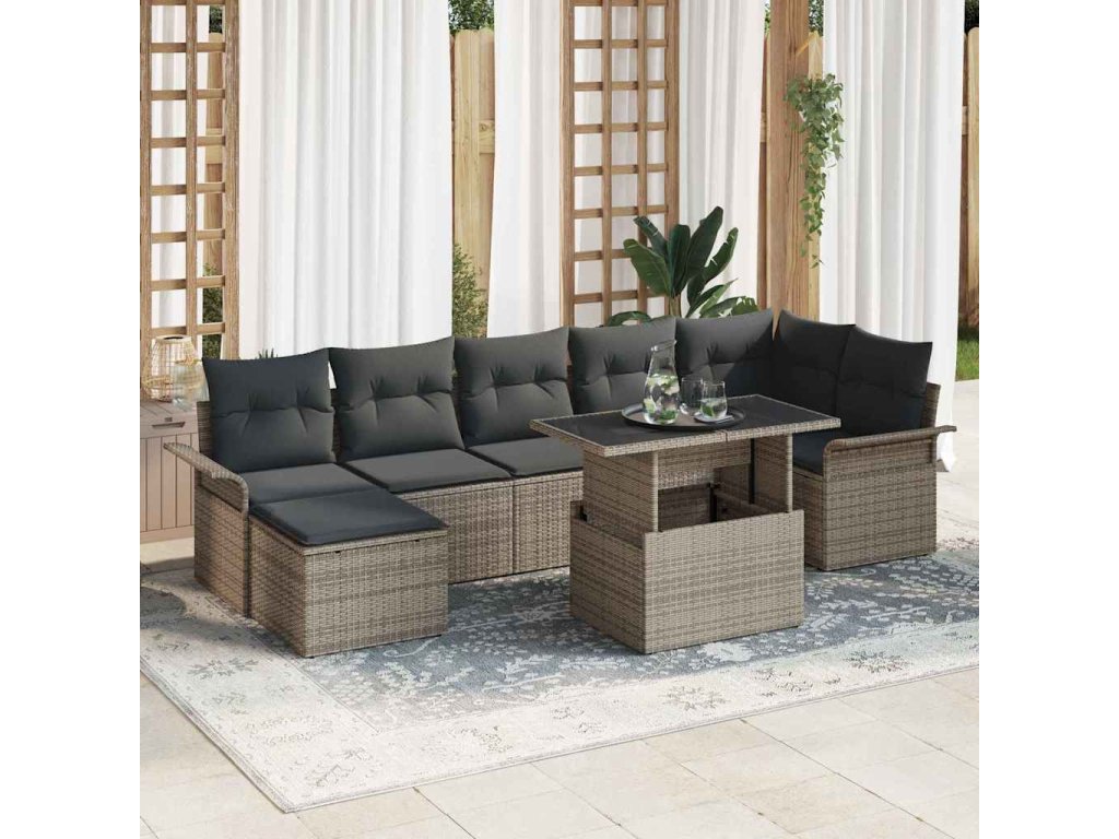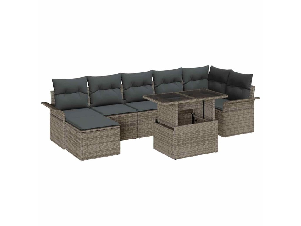 Súprava záhradných pohoviek s vankúšom 8 pcs Sivá Poly ratan 3348325