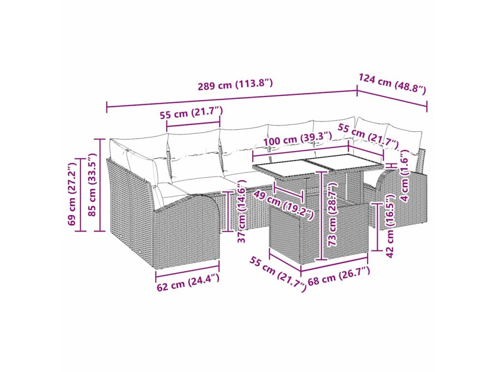 - Odporúčané použitia: Tento pohovkový set je perfektný na relax vo vašej záhrade, terase alebo pri bazéne. Jeho dizajn zvyšuje vonkajšiu atmosféru a je vhodný na akcie alebo útulné chvíle. Hodí sa pre všetkých, či už ste majiteľ domu alebo prevádzkujete hotel.