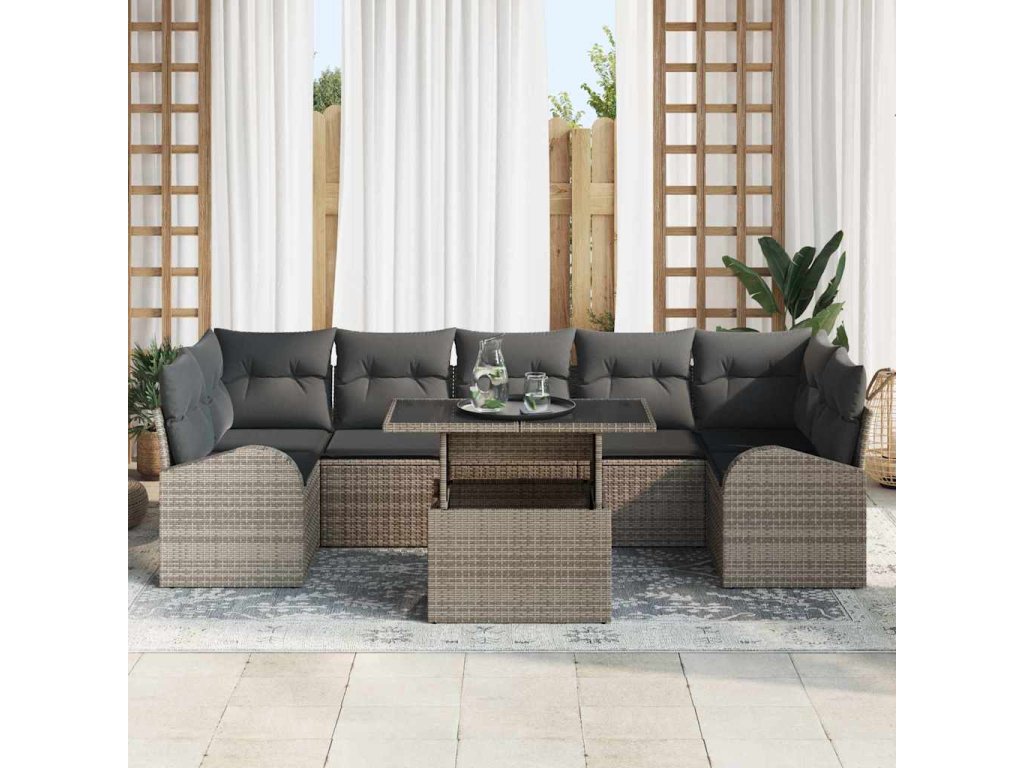 Súprava záhradných pohoviek s vankúšom 8 pcs Sivá Poly ratan 3348595