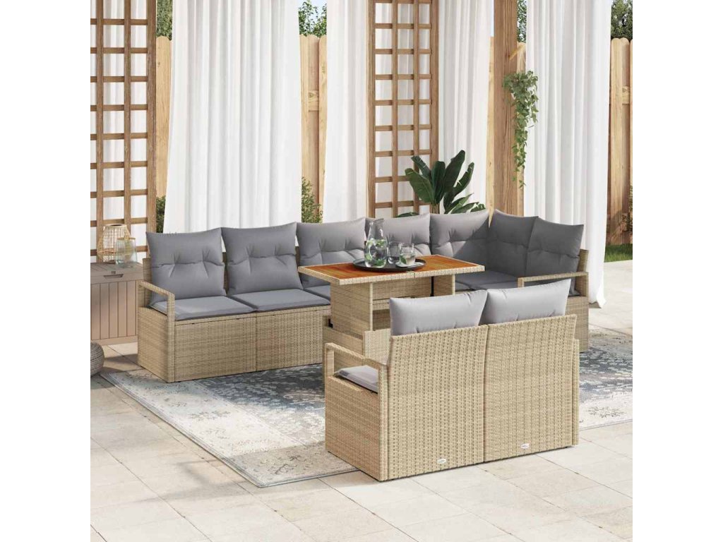 Súprava záhradných pohoviek s vankúšom 9 pcs Béžová a šedá 3349727